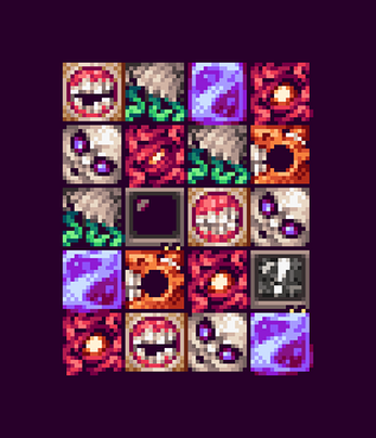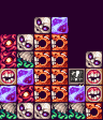 This asset pack includes 7 different 16x16 puzzle blocks with 4 frames of idle animation, 2 flash frames and 2 hurt frames for each block